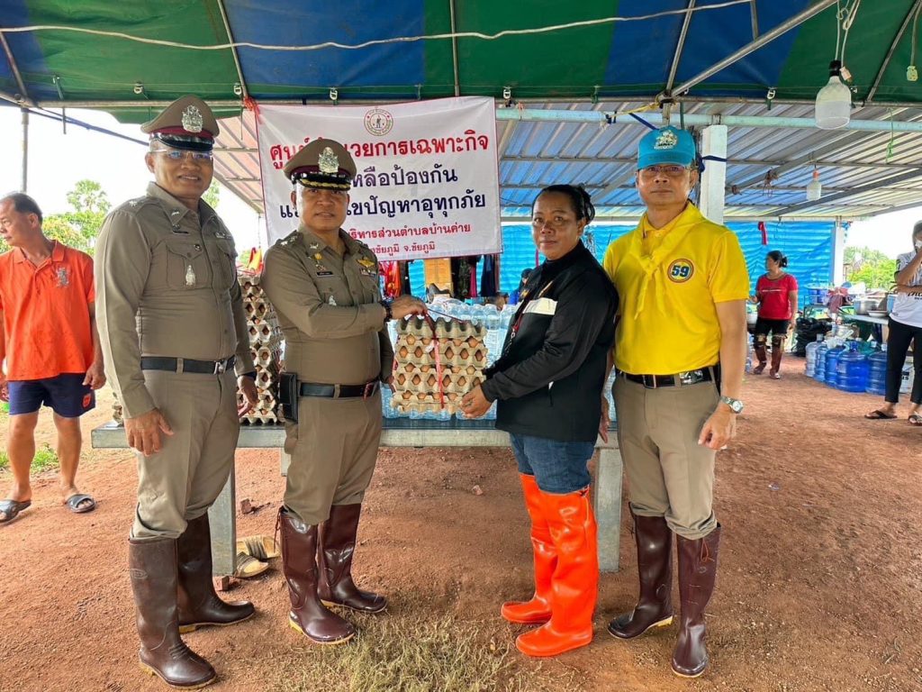 มอบเครื่องอุปโภคบริโภคหมู่บ้านประสบอุทกภัย 10 ตุลาคม 2566 โดย sornram / ข่าวประชาสัมพันธ์,ข่าวกิจกรรม,ข่าวประชาสัมพันธ์,ข่าวประชาสัมพันธ์,ข่าวฝากประชาสัมพันธ์,ข่าวภารกิจผู้บังคับบัญชา สภ.บ้านค่าย จว.ชัยภูมิ เมื่อวันที่( 9 ตุลาคม 2566 ) เวลา 11.00 น. พ.ต.อ.อภิวัชร์ นาทอง ผกก.สภ.บ้านค่าย ,พ.ต.ท.วิทยา กุศลวงค์ รอง ผกก.(สอบสวน)ฯ , พ.ต.ท.วรเชษฐ์ ป้องสุธาธาร รอง ผกก.ป.ฯ,พ.ต.ท.บุญแสง สารพัฒน์ สว.อกฯ และชุดจิตอาสาพระราชทาน จำนวน 10 นาย ได้ร่วมกันออกตรวจเยี่ยมชุมชนบ้านเสี้ยวน้อย หมู่ที่ 8 ตำบลบ้านค่าย อำเภอเมืองจังหวัดชัยภูมิ ซึ่งได้รับความเดือดร้อนผลกระทบน้ำล้นตลิ่งจากลำน้ำชีไหลเข้าท่วมชุมชนหมู่บ้าน พร้อมกับได้มอบเครื่องอุปโภคบริโภค น้ำดื่ม ให้กับผู้ใหญ่บ้านและผู้นำชุมชนเพื่อไว้ใช้บรรเทาปัญหาความเดือดร้อนต่อไป ✌🏻💪🏻