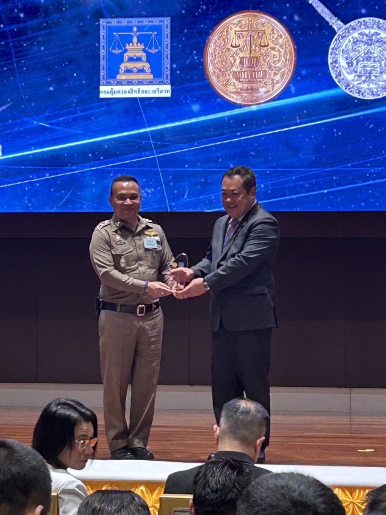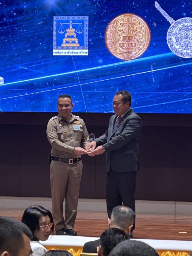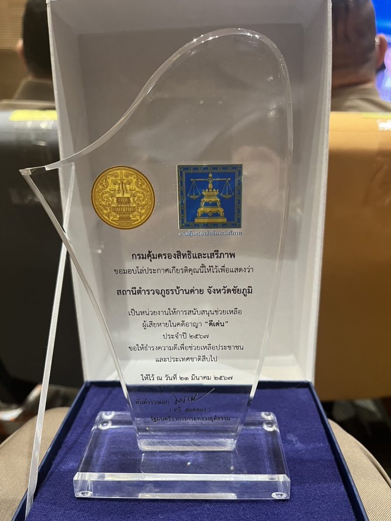 พ.ต.อ.อภิวัชร์ นาทอง ผู้กำกับการสถานีตำรวจภูธรบ้านค่าย รับโล่เกียรติคุณสถานีตำรวจที่มีผลการดำเนินงานดีเด่นในการแจ้งสิทธิและรับคำขอผู้เสียหายในคดีอาญา ณ ห้องประชุม 10 – 09 ชั้น 10 อาคารกระทรวงยุติธรรม ถนนแจ้งวัฒนะ เขตหลักสี่ กรุงเทพมหานคร