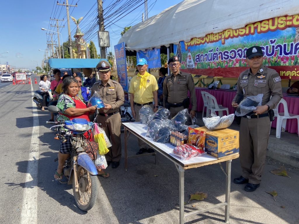 เมื่อวันที่ (๒๘ ธ.ค.๒๕๖๗) เวลา ๐๙.๐๐ น. พ.ต.อ.วัฒนชัย จันทาทุม รอง ผบก.ภ.จว.ชัยภูมิ ได้มาตรวจเยี่ยมจุดบริการประชาชน หน้าสถานีตำรวจภูธรบ้านค่าย พบ พ.ต.อ.อภิวัชร์ นาทอง ผกก.สภ.บ้านค่าย พร้อมข้าราชการตำรวจ สภ.บ้านค่าย เจ้าหน้าที่จิตอาสา กต.ตร.สภ.บ้านค่าย ฝ่ายปกครอง กำนัน ผู้ใหญ่บ้าน อปพร. สาธารณสุข และเทศบาลตำบลบ้านค่ายหมื่นแผ้ว อยู่ปฏิบัติหน้าที่อำนวยความสะดวกการจราจรให้กับประชาชนในช่วงเทศกาลปีใหม่ ๒๕๖๘ พร้อมได้กำชับการปฏิบัติหน้าที่ตามมาตรการป้องกันอุบัติเหตุ การบริการประชาชน และได้รณรงค์การขับขี่ปลอดภัยมอบหมวกกันน็อคให้กับผู้ขับขี่รถจักรยานยนต์ที่สัญจรผ่านจุดบริการพร้อมได้อบรมกฎหมายจราจร ให้กับผู้ขับขี่รถ เพื่อความปลอดภัยในการใช้รถใช้ถนน