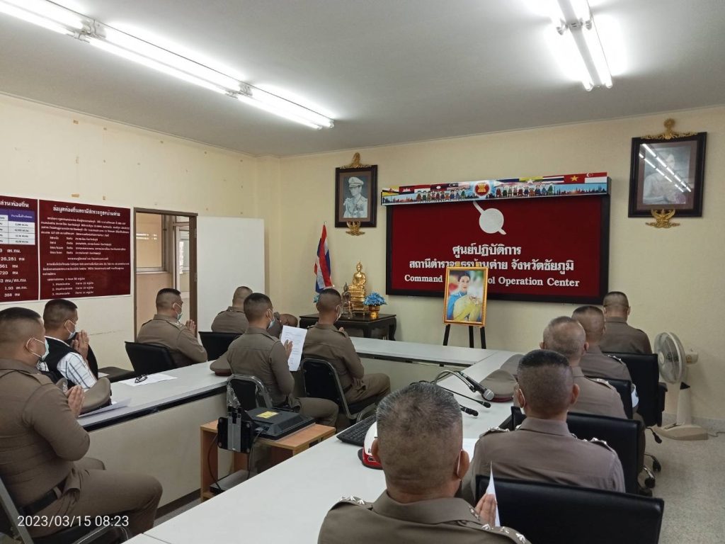 วันที่ 15 มี.ค.66 เวลา 08.30 น. พ.ต.อ.อภิวัชร์ นาทอง ผกก.สภ.บ้านค่าย พร้อมข้าราชการตำรวจในสังกัดสถานีตำรวจภูธรบ้านค่าย ร่วมพิธีเจริญพระพุทธมนต์ และเจริญจิตตภาวนา เพื่อถวายแด่สมเด็จพระเจ้าลูกเธอ เจ้าฟ้าพัชรกิติยาภา นเรนทิราเทพยวดี กรมหลวงราชสาริณีสิริพัชร มหาวัชรราชธิดา ให้ทรงหายจากพระอาการประชวรโดยเร็ว ณ ห้องประชุม ศปก.สภ.บ้านค่าย ต.บ้านค่าย อ.เมือง จ.ชัยภูมิ