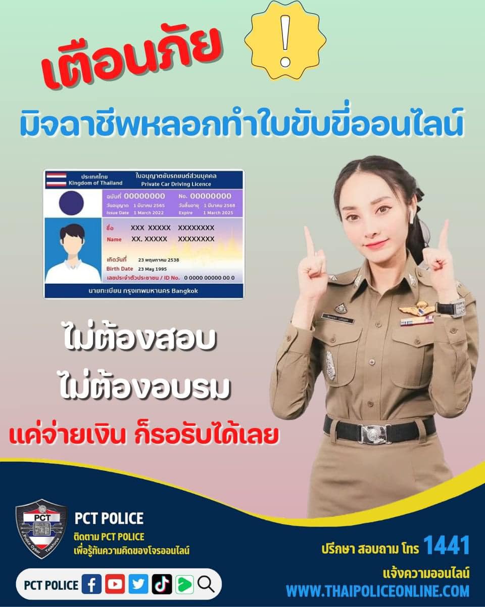 กลับมาระบาดอีกครั้งกับมิจฉาชีพที่อ้างว่ารับทำและจัดหาใบอนุญาตขับรถบนโลกออนไลน์ โดยไม่ต้องอบรมหรือทดส