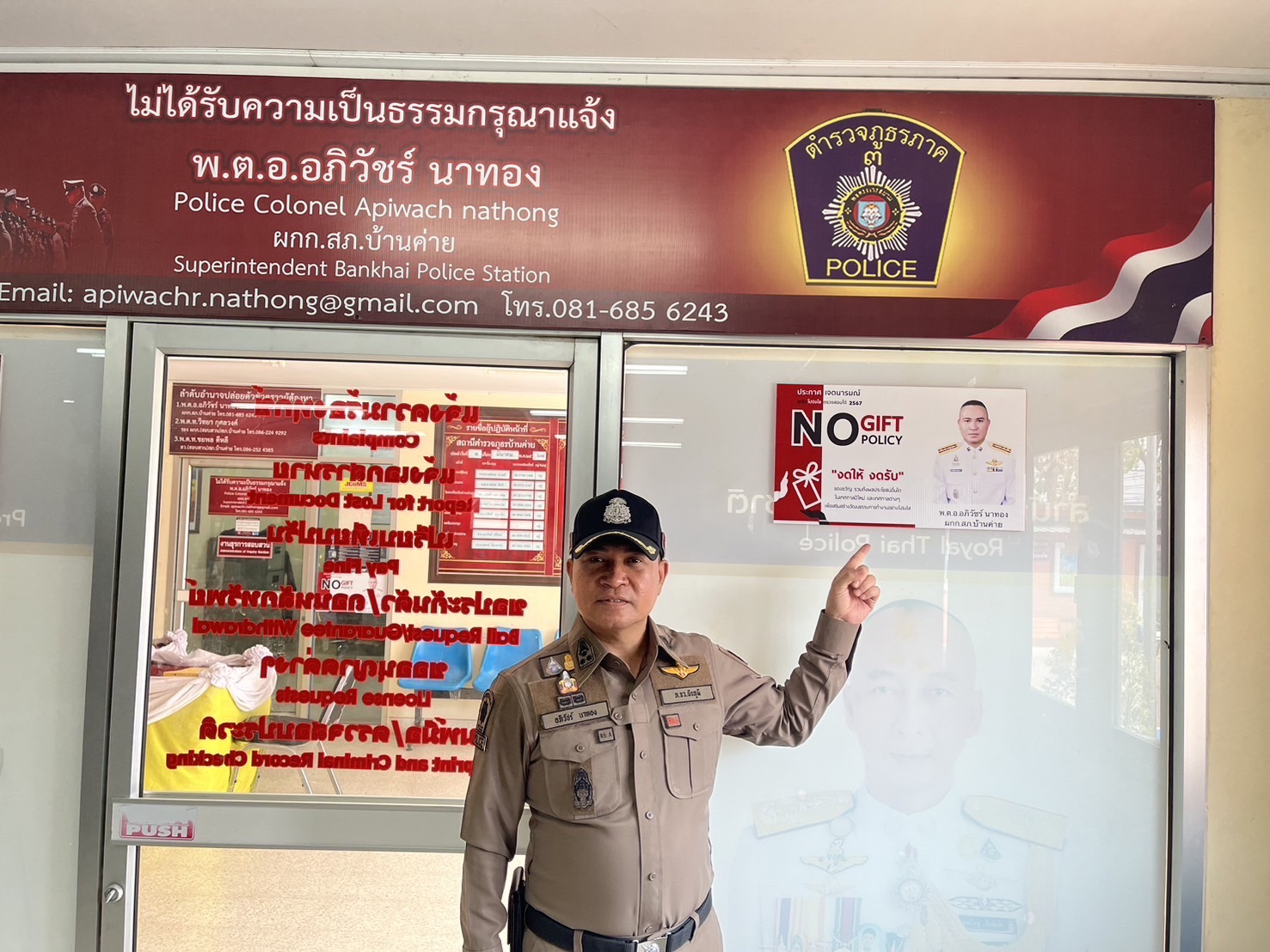 เมื่อวันที่ ๒๑ กุมภาพันธ์ ๒๕๖๗ เวลา ๑๐.๓๐ น. พ.ต.อ.อภิวัชร์ นาทอง ผู้กำกับการสถานีตำรวจภูธรบ้านค่าย
