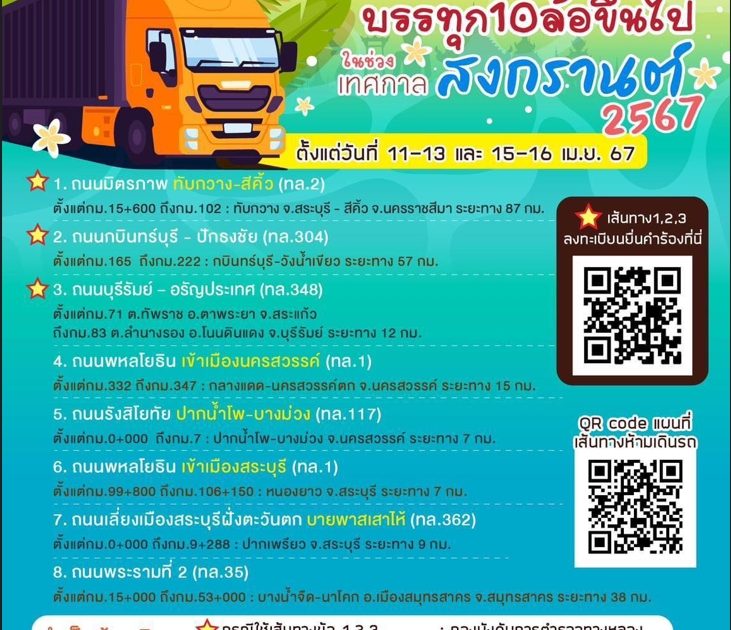 8 เส้นทาง ห้ามรถ 10 ล้อขึ้นไป เดินรถในช่วงสงกรานต์ปี 2567