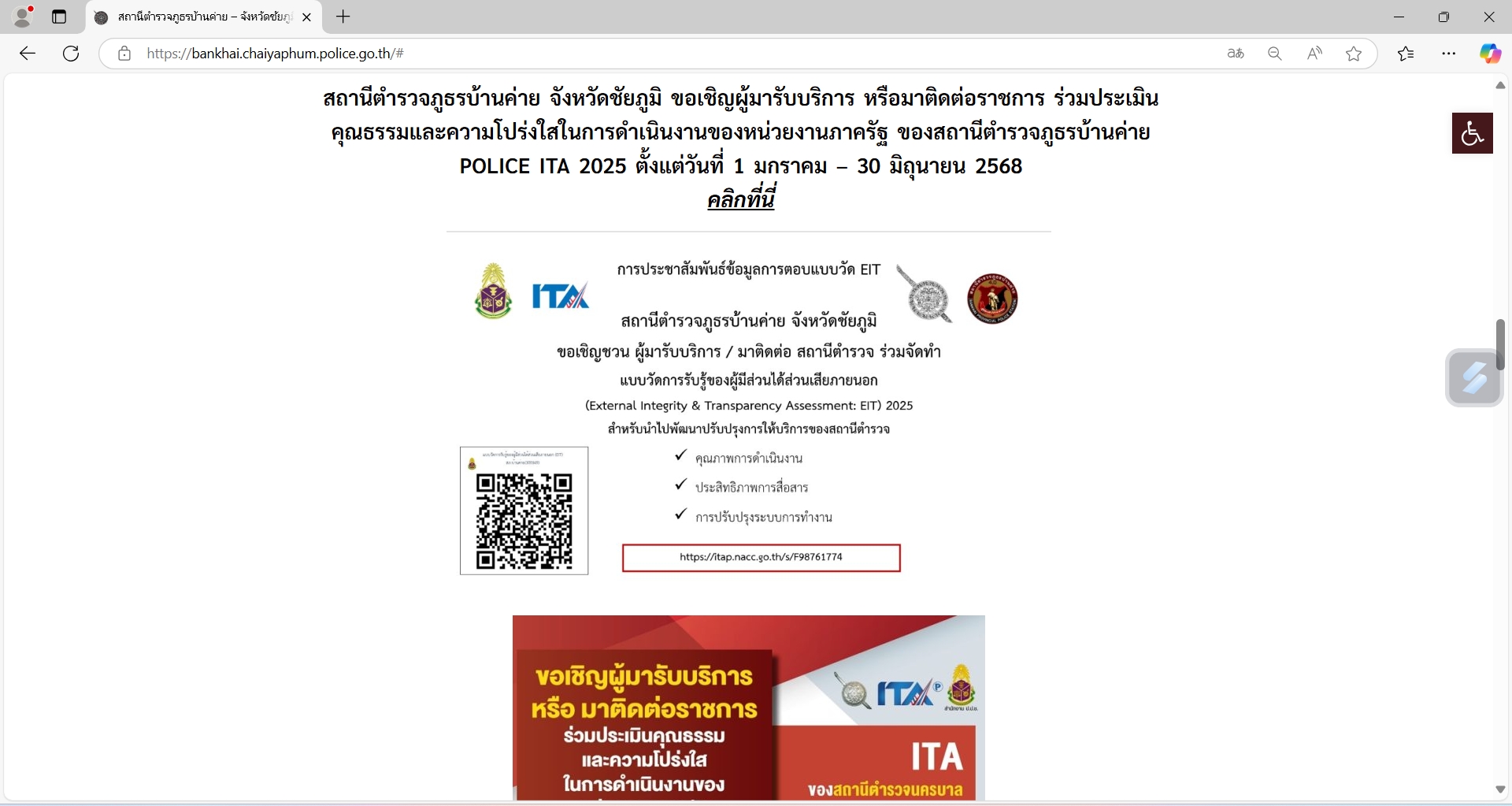 ประชาสัมพันธ์ข้อมูลการประเมินคุณธรรมและความโปร่งใสในการดำเนินงานของหน่วยงานภาครัฐ Integrity and Transparency Assessment : ITA)